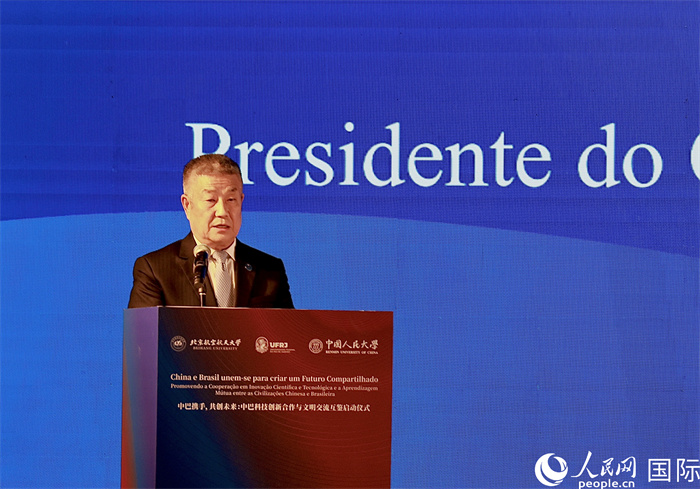 人民网里约热内卢7月5日电 (记者陈一鸣、宋亦然)当地时间7月5日,由中国人民大学、北京航空航天大学、巴西里约热内卢联邦大学和巴西米纳斯吉拉斯联邦大学联合主办的“中巴携手,共创未来:中巴文明交流互鉴与科技创新合作启动仪式”在巴西里约热内卢联邦大学举行。仪式上,四校代表签署了共建“中国—巴西文明交流互鉴合作研究中心”协议,并为研究中心揭牌。