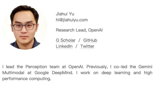 于佳慧(Jiahui Yu)主导了GPT-4o图像生成系统;
