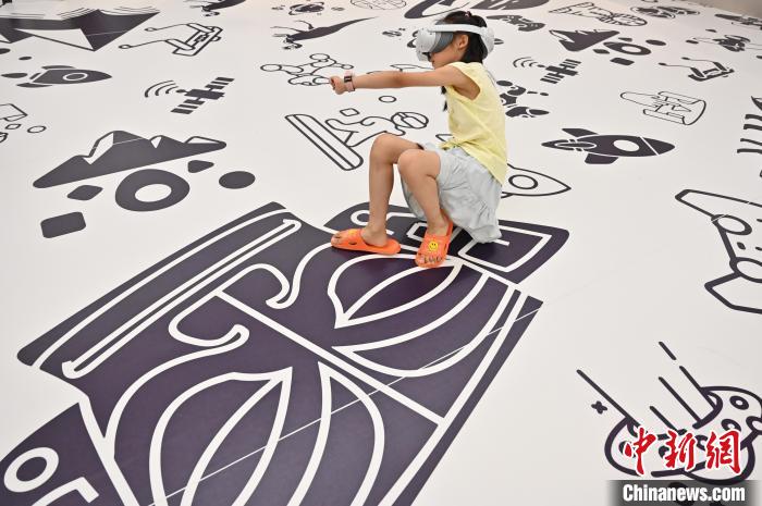 7月10日,位于广东省广州市的广州图书馆未来阅读馆正式开放,该馆通过虚拟现实(VR)技术,为读者提供沉浸式交互阅读空间。图为未来阅读馆吸引小朋友体验。中新社记者 陈楚红 摄
