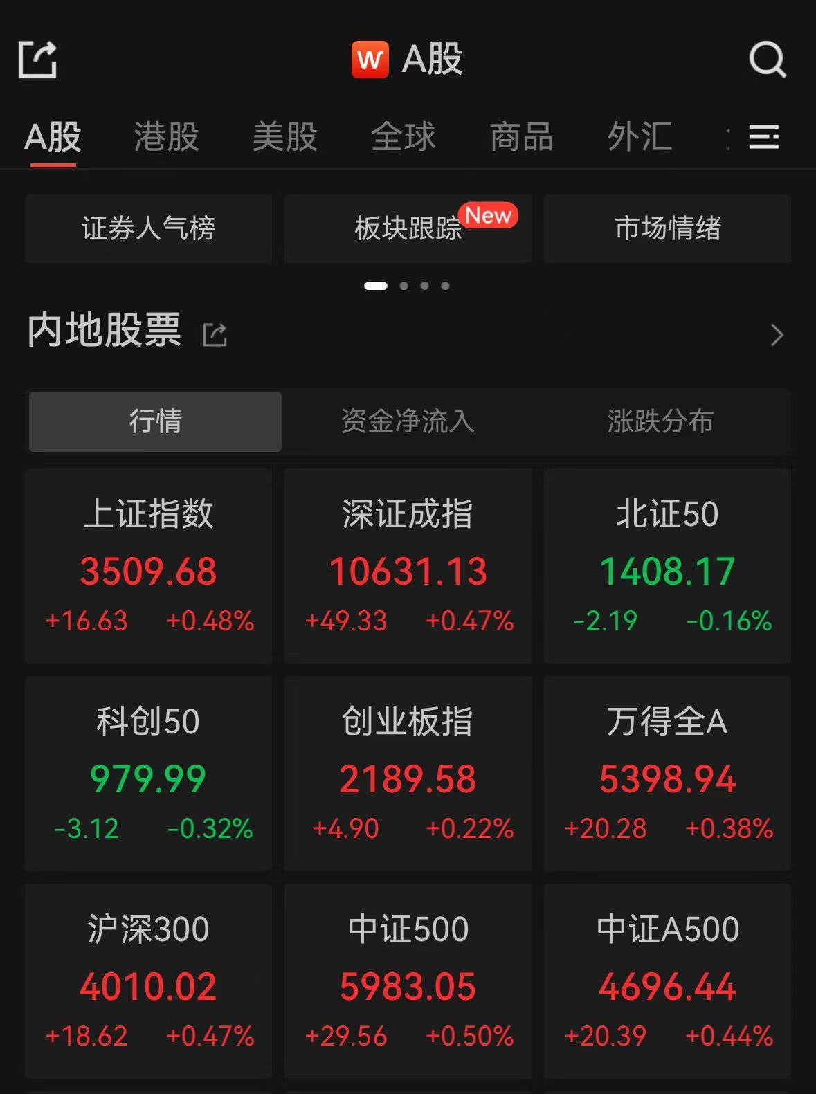 截至收盘,沪指涨0.48%报3509.68点,深成指涨0.47%,创业板指涨0.22%,北证50指数跌0.16%。