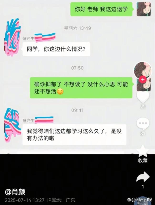 回顾肖颜此前的动态,诸多细节令人揪心。7月14日,她更新的内容似乎在暗示自己曾患抑郁症,面对网友们暖心的安慰,没人能想到第二天她就永远地离开了。评论区中,一位自称是同事的网友也表达了深深的惋惜之情。肖颜当时解释,所展示的聊天截图是2020年的事,且自己研究生已正常毕业。结合讣告,2020年丈夫的离世极有可能是她患上抑郁症的导火索,甚至因此产生退学的念头,那时她才仅仅22岁。
