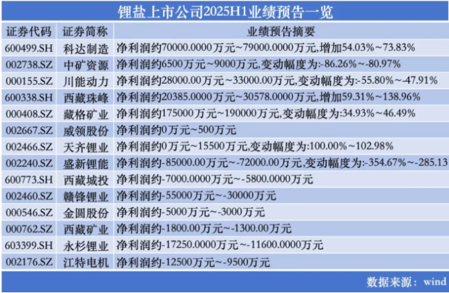 梳理来看,12家具备样本价值的公司中,有5家预增,其中的天齐锂业、威领股份(002667.SZ)扭亏为盈,赣锋锂业(002460.SZ)则为减亏,仅科达制造(600499.SH)、藏格矿业(000408.SZ)是实打实的盈利增长。