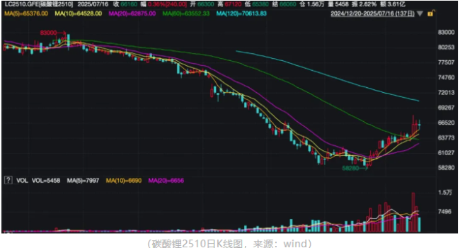 值得注意的是,在政策引导之下,近来“反内卷”之风吹至锂电行业,叠加海内外业内扰动因素,催动锂盐现货/期货及板块股票均走出一波触底反弹行情。