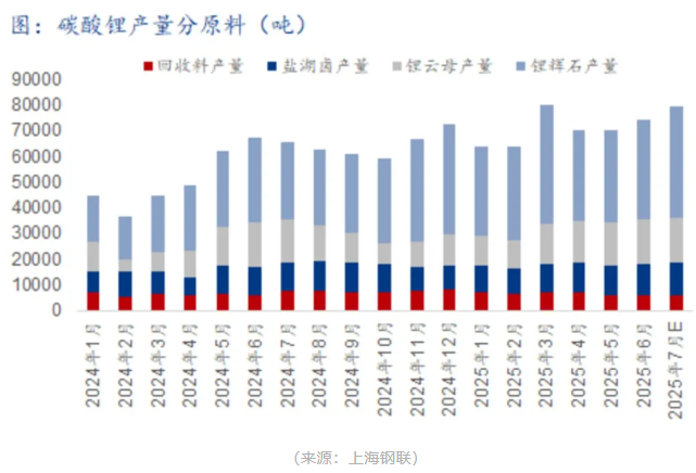 根据2024年报,尽管去年多企业亏损,但披露产销数据的12家锂盐上市公司中,仅有藏格矿业等3家公司产量有小幅缩减。而据上海钢联数据,今年以来,碳酸锂产量明显还在增长。