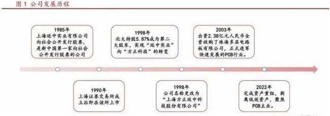 1998年,以北大方正为代表的北京大学所属关联企业通过二级市场购买该公司股票,并入驻董事会,成功实现由“延中实业”向“方正科技”的转变。2003年,方正科技收购珠海多层电路板有限公司,正式进军PCB行业。