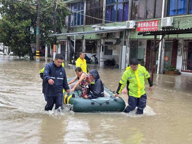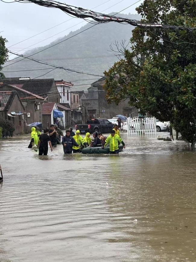 镇海汶溪村严重内涝 村干部涉水救援转移被困群众
