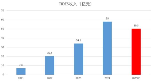 最大的亮点要数TIDES业务,上半年收入飙升141.6%至50.3亿,贡献了总营收的四分之一,以及几乎全部的收入增量。