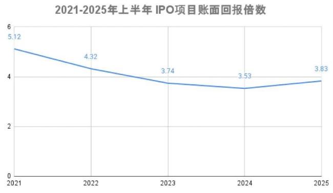 从统计数据上也能清晰的看出,一二级市场的整体估值差在过去五年持续收窄。CVSource投中数据显示,2021年中国VC/PE机构的IPO项目账面回报平均还有5.12倍,到2024年降至3.53倍。2025年上半年略有回升,但也仅为3.83倍。