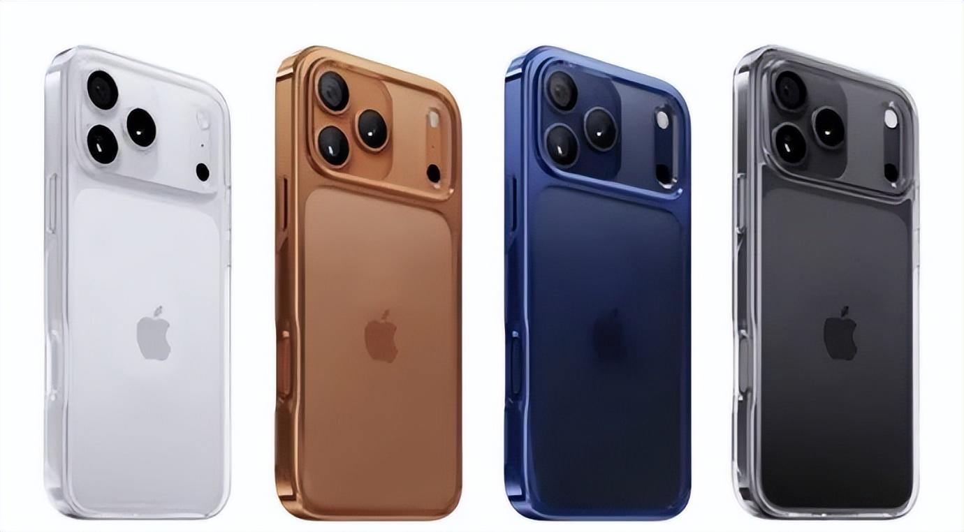 基于曝光的镜头盖板,博主还绘制了iPhone 17 Pro的四款配色渲染图,这是苹果史上变化最大的iPhone。