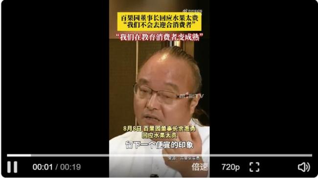 8月10日,“百果园称不会迎合消费者”登上微博热搜,引起广泛关注。此前,百果园董事长余惠勇通过视频公开回应外界对其水果价格过高的质疑。他表示,虽然水果是普通商品,但品质差异极大,真正了解水果的消费者却很少。百果园始终坚持做高品质水果,不会为了迎合市场而牺牲品质。