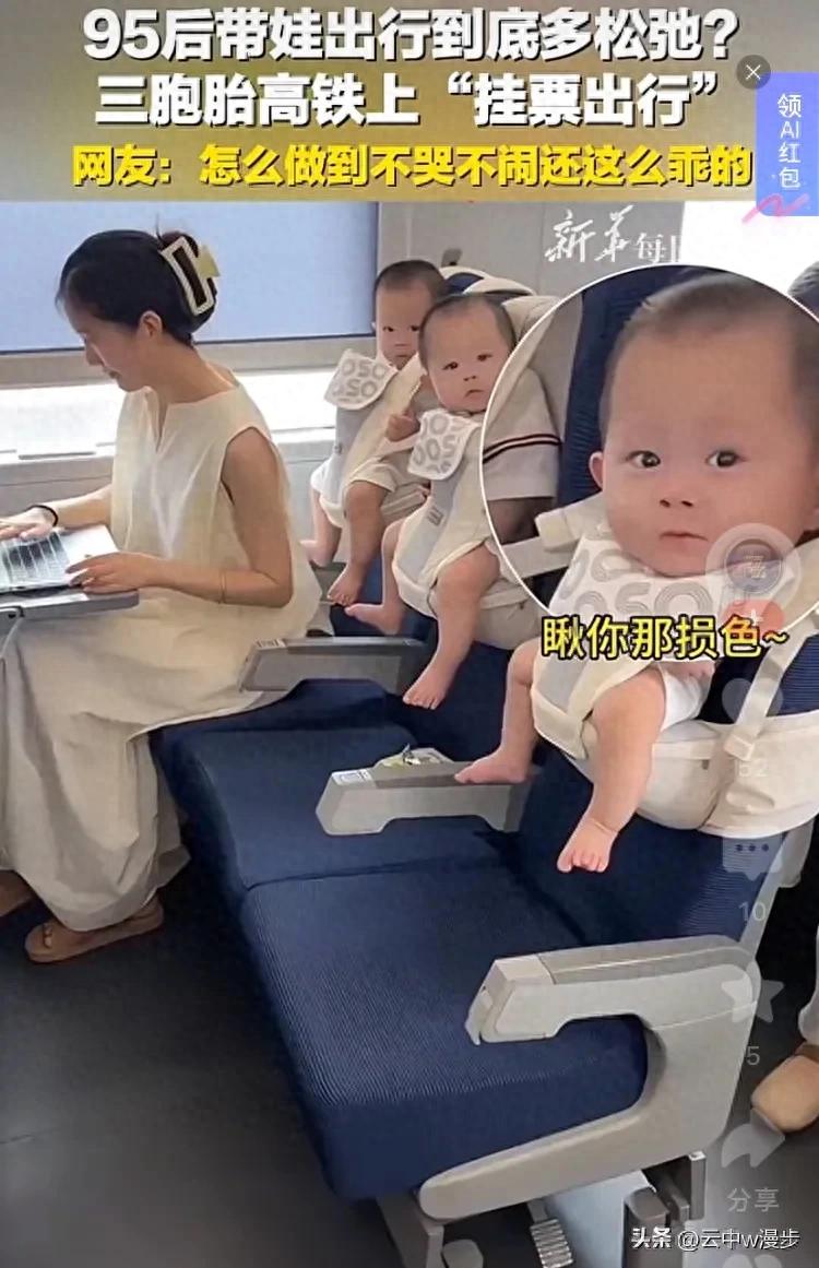 三胞胎高铁“挂票出行”走红 网友:怎么做到这么乖不哭不闹