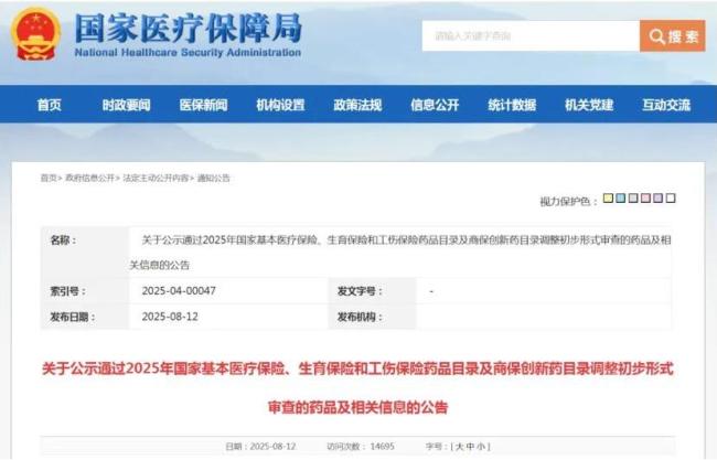 形式审查是对申报药品是否符合当年基本医保目录和商保创新药目录调整申报条件以及药品信息完整性进行的审核,分为初审、初审结果公示、复审、复审结果公告四个步骤。本次公示的内容即为2025年的初审结果,仅代表该药品具备了参与目录调整后续工作流程的资格。