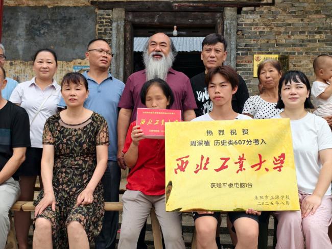 8月14日,湖南耒阳市大义镇新白石村迎来一条喜讯:18岁的周深植考上985高校,被西北工业大学录取。周深植所在的高中学校校长带队给他送来了奖牌和学习用的平板电脑。