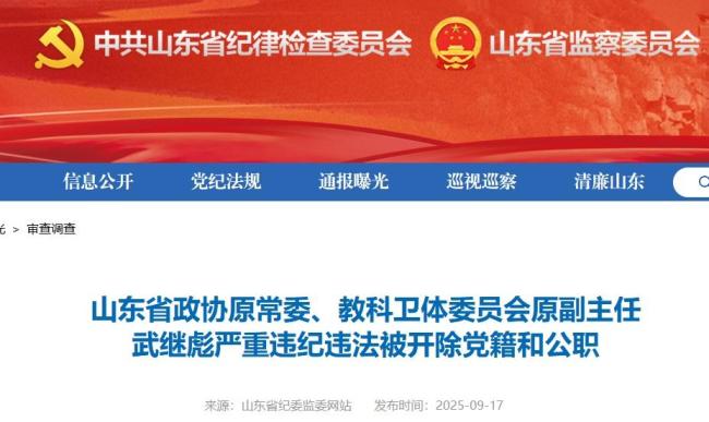 山东省政协原常委武继彪被“双开” 严重违纪违法受惩处