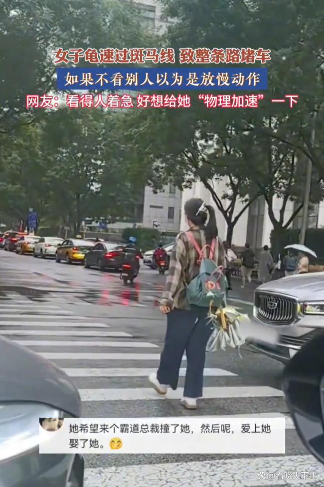 女子慢悠悠过斑马线致大堵车 网友:不知道还以为视频被延时播放
