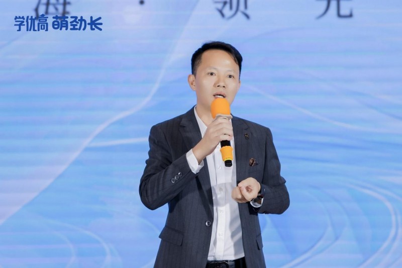 在发布会上,学优高&萌劲长品牌创始人盛滨华向全国合作伙伴致谢并分享了其创业历程与发展规划。十四年前,盛滨华先生以代理商身份涉足母婴行业,凭借对儿童奶粉赛道的精准判断及合作伙伴支持,学优高短时间内在江西自主儿童奶粉销量榜上位居前列,合作门店达380家,其中多数为本地头部连锁。这些成绩离不开众多合作伙伴的信任与支持。
