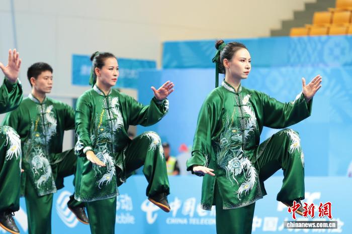 中新网佛山9月27日电 (记者 张璐)9月27日,随着第三单元的比赛全部结束,中华人民共和国第十五届运动会(以下简称“十五运会”)群众展演太极拳项目决赛(以下简称“比赛”)在广东佛山高明体育中心落幕。据悉,为期两天的赛程中,来自全国各地的56支展演队伍、共计610名运动员同场竞技。