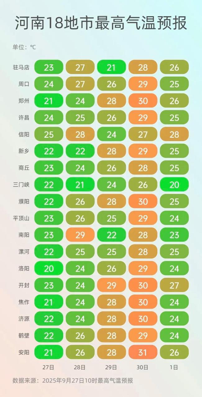 气温方面,未来几天将经历“先升后降”的波动。从今天起到下周二,全省大部最高气温将逐步回升至30℃上下,带来短暂暖意。但这股暖意更像是降温前的序曲,真正的转折点就在10月1日。未来几天的最低气温表现平稳,大多在16℃至19℃之间小幅波动。昼夜温差拉大,请市民朋友密切关注天气变化,早晚出行适当增添衣物。
