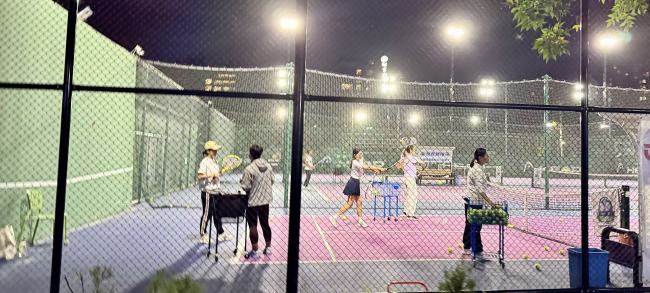 中华网财经注意到,不少网球场每晚灯火通明,每块场地上都有网球爱好者在学习或练习网球。