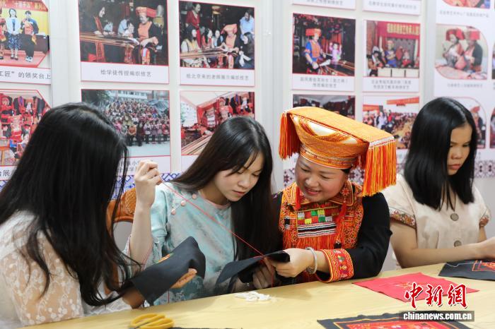 中新网来宾10月17日电(韦慧兰 陈秋霞)在广西来宾市金秀瑶族自治县非遗代表性传承人赵凤香的工作室里,越南留学生阮翠红将瑶族刺绣纹样上传至人工智能(AI)平台,输入“传统纹样+现代服饰”指令。仅1分钟,融合传统与现代的设计海报跃然屏上,赵凤香赞叹:“这手艺终于能被更多年轻人看见!”