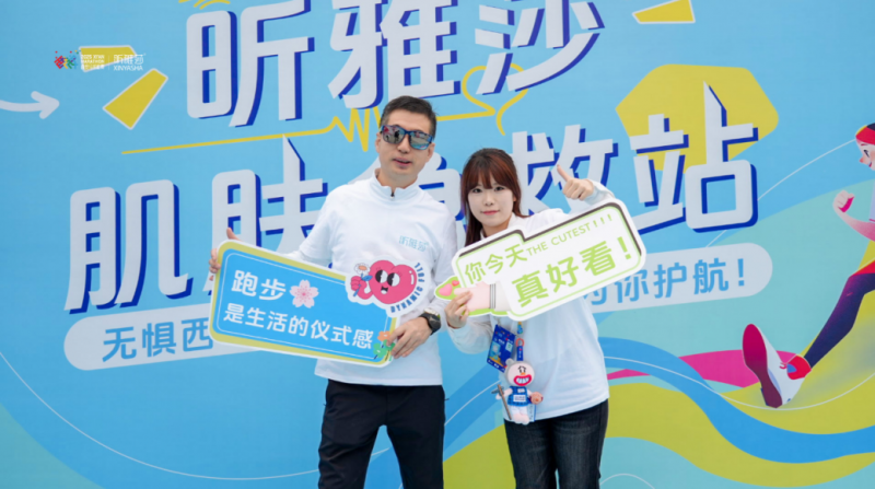 西安奥体中心的昕雅莎“肌肤急救站”,堪称赛后最具人气的聚集地。不同于传统的补给站点,这里以“沉浸式修护”“趣味互动”的模式,让参赛者和观众都能深度参与其中。在产品体验区,昕雅莎明星单品整齐陈列,专业护肤顾问一对一为参赛者分析雨中运动后的肌肤状态,手把手指导医用修复面膜、胶原棒的正确使用方法,不少参赛者敷上面膜后当场反馈:“跑完后脸又红又紧绷,敷上立马就舒缓了!”