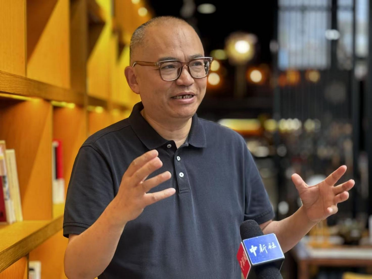 8月7日,陈卫新在南京琵琶湖畔的“三余书社”受访。葛勇 摄