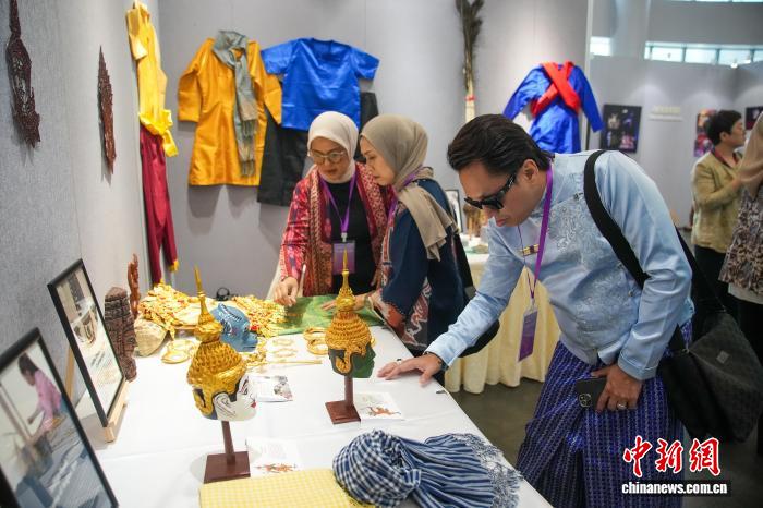 10月29日,丝路华章——第十二届中国—东盟(南宁)戏剧周戏剧艺术展在南宁博物馆正式开展。图为柬埔寨展位吸引参观者。中新社记者 陈冠言 摄