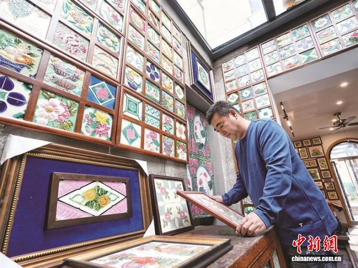 “我查阅资料了解到,老花砖生产、流行的时代主要在1915年-1935年,最初始于欧洲,后来输入到印度、东南亚地区、日本、中国东北地区。20世纪二三十年代,老花砖在中国东北等地特别流行,是财富家庭的象征,它们通常镶嵌在墙壁、炕柜、桌椅上。”说起老花砖的掌故,费广业如数家珍。