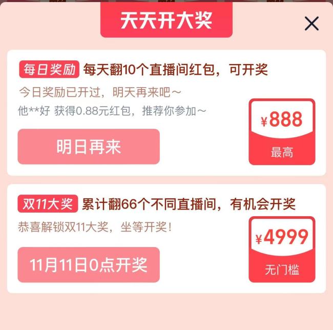双11直播红包已全面脱水 消费者热情减退“双11”购物节提前近一个月开启,被称为“史上最长双11”。一些消费者依然热衷于搭配满减和列攻略,希望在大促中获得更多的优惠。但也有人开始佛系购物。常态化的购物节大促让消费者不用再等到特定节点