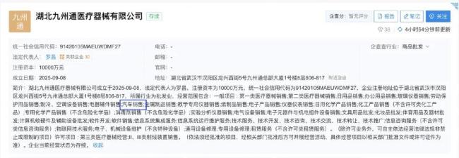 九州通,准备卖车了!截至目前,九州通今年来已成立四家涉及汽车/电车销售业务的新公司。