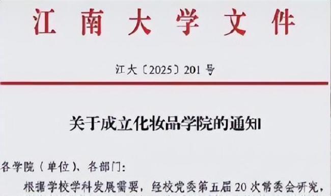 江南大学回应成立化妆品学院 聚焦日化产品研发近日,有消息称江南大学成立了化妆品学院,引发广泛关注。9月28日,江南大学党委宣传部和化学与材料工程学院确认了这一消息。学校此前并无专门的化妆品专业,但已有相关研究方向
