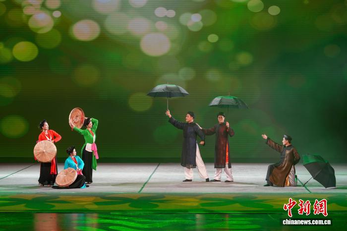 中新网南宁10月29日电 (俞靖)第十二届中国—东盟(南宁)戏剧周首场演出28日晚在广西南宁上演,来自中国与东盟国家的艺术院团同台演绎经典剧目,以戏会友,共促文化艺术交流互鉴。