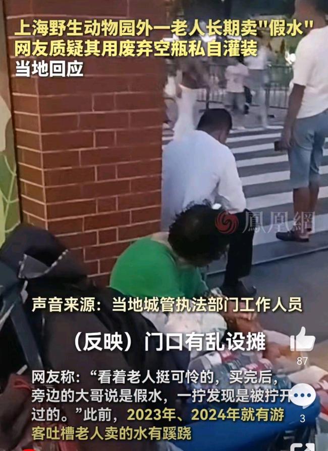 游客买水可怜老人却遭灌装假货 同情心不应被消费别让“同情滤镜”成为消费善良的幌子。近日,“上海野生动物园外老人用废弃空瓶灌水卖游客”的新闻引发广泛关注。许多游客出于对老人的同情而光顾,却没想到买到了“假水”。这一事件敲响了公众道德与权益认知的警钟
