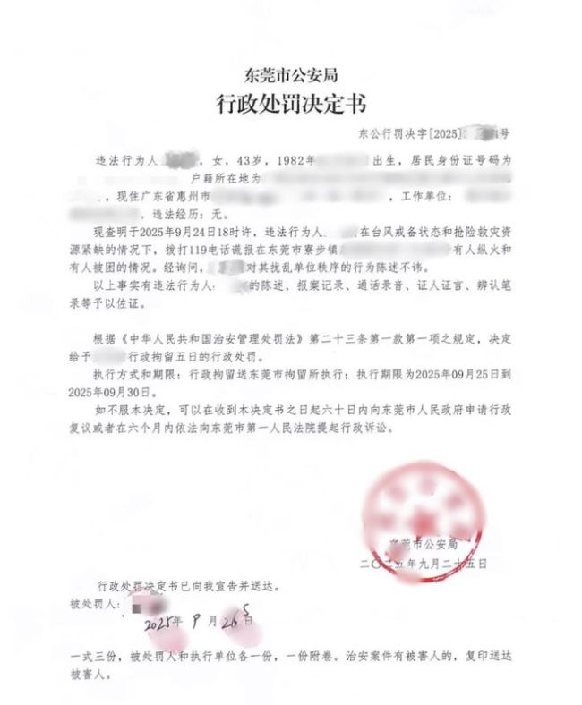 东莞一女子因房租纠纷谎报火警 恶意行为受惩处近日,东莞消防披露了一起虚假警情事件。9月24日,台风“桦加沙”来袭,全城进入紧张备战状态。当天18时51分,寮步镇消防大队接到紧急报警,一女子称泉塘围仔西十五巷9号发生纵火并有人被困